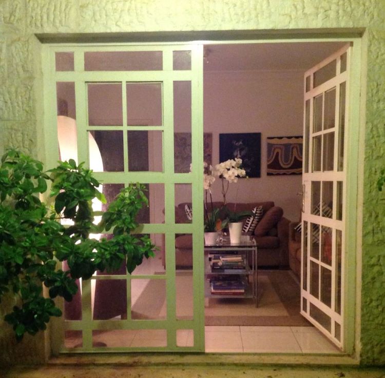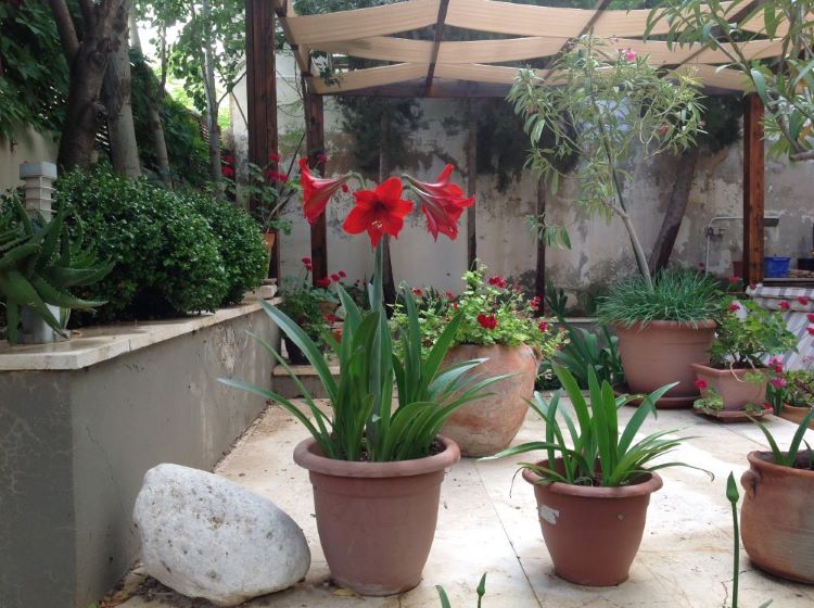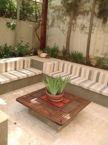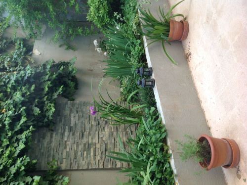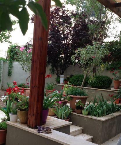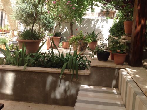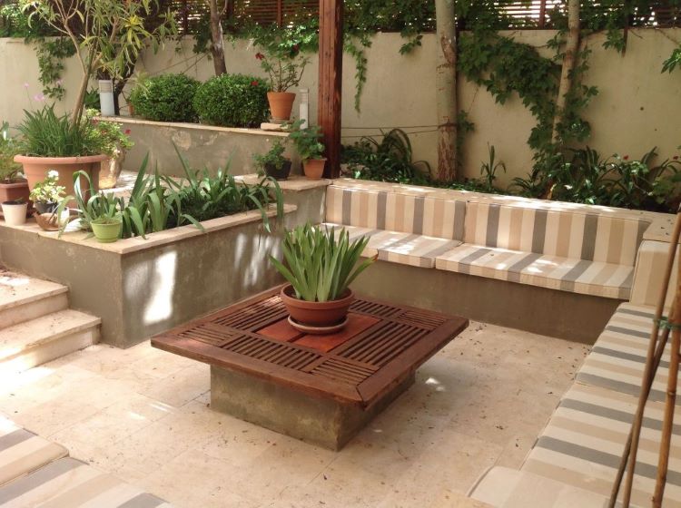 -The unique layout of two patios and small gardens;