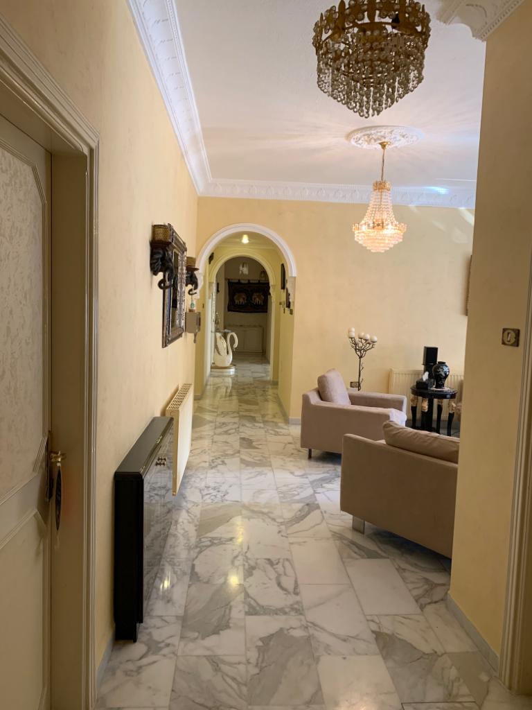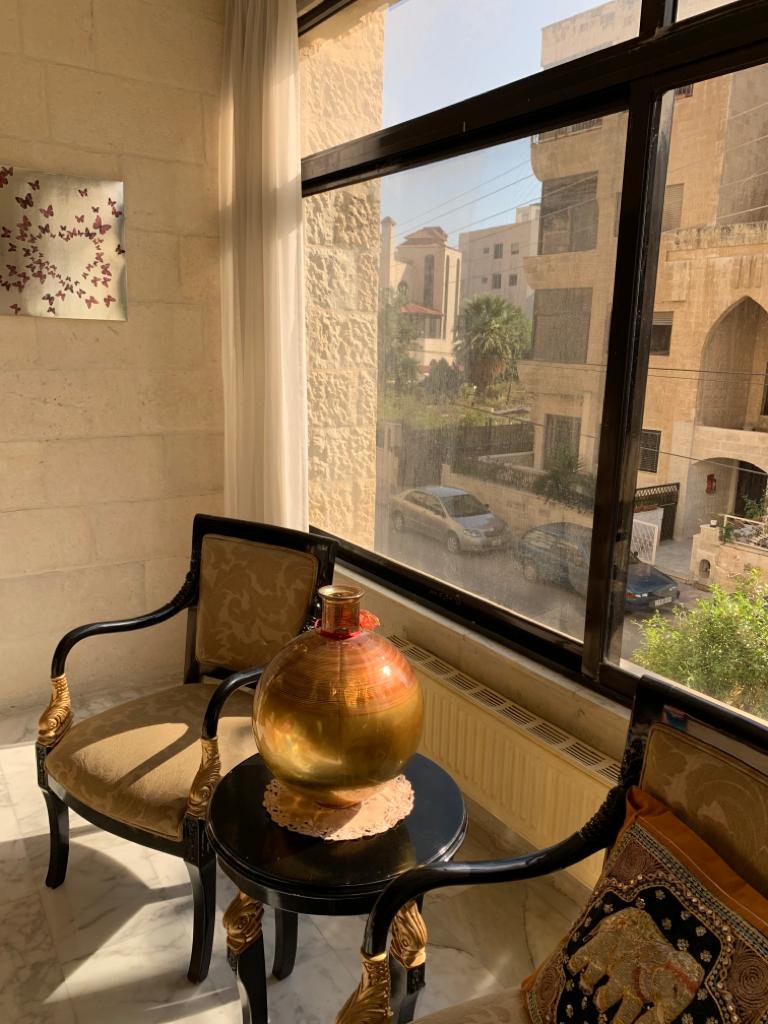 This spacious apartment is located on a quiet street just off of one of the most important main roads in West Amman, Mecca Street. The neighborhood is quiet, while still literally a walk or very short drive away from restaurants, shops, and supermarkets. Multiple exit routes from within the community also make it easy to get to the other significant areas in Amman, such as Abdoun, Airport Road, Medina Street, and Medical City Road. The surrounding neighborhoods are all quiet, and Um Uthaina’s renowned Gold and Jewelry Souq is nested in the area as well.